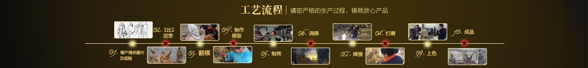 制作一件完美的鑄銅雕塑,最重要的步驟就是制作泥塑模型,然后再用工業(yè)硅膠拓印、翻模。所以泥塑的姿態(tài)、神情生動與否直接影響最終銅雕塑的品質(zhì)。所以我廠一直對泥塑模型的制作格外重視。我廠以雕塑為本,以藝術(shù)為根,挾中華文化之傳統(tǒng),偕歐陸藝術(shù)之風韻,風格獨特,盡顯淋漓盡致。我們本著大膽創(chuàng)新、勇于突破的精神,以追求卓越為導(dǎo)向,堅持寧缺勿濫為原則,并可依照您提供的要求,為您量身設(shè)計制作。我廠人才濟濟,有智慧嚴謹?shù)墓芾戆嘧樱姸嗄贻p充滿激情、充滿創(chuàng)意的專業(yè)設(shè)計團隊、有專業(yè)技術(shù)精湛的雕塑制作人才和專業(yè)的施工隊伍。他們不僅具深厚的文化藝術(shù)底蘊,更汲取當代雕塑精華,博采眾家之長,作品既有嚴肅莊重寫實題材,也有輕松前衛(wèi)的抽象題材,表現(xiàn)手法上浪漫主義中不乏樸實,現(xiàn)實主義中蘊涵著激情,設(shè)計理念貫穿古今、融匯中西,深刻詮釋著藝術(shù)的精髓,把古典主義和后現(xiàn)代主義完美的融合,將雕塑藝術(shù)演繹為力的凝聚、美的體現(xiàn),讓人們感受到的不僅是一種藝術(shù)的浪漫與優(yōu)雅、粗獷與悲壯、更是豐富的優(yōu)秀藝術(shù)寶藏和文化傳統(tǒng),讓您在藝術(shù)與文化中穿流,在時空中飄蕩,使靈魂在藝術(shù)的海洋洗禮。 MORE+
